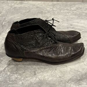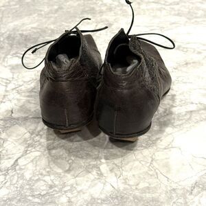 Cydwoq Vintage brown leather pointy laced flat shoes size 38 / US 7 Wood Heel