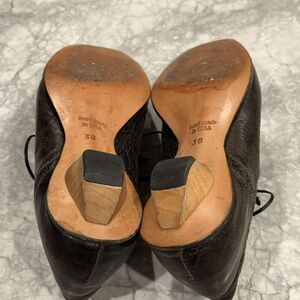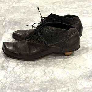 Cydwoq Vintage brown leather pointy laced flat shoes size 38 Wood Heel