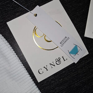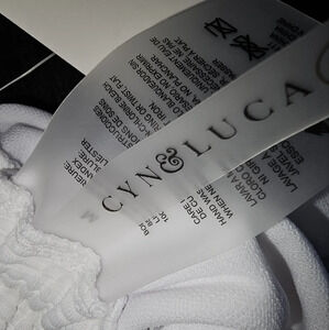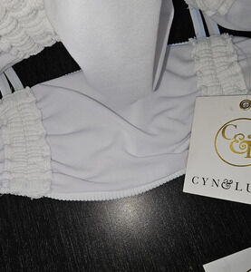 Cyn and Luca Ruched 2pc Bikini white medium nwt Features a ruched bandeau top with straps and Cheeky ruched back bottom with ribbed material