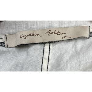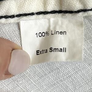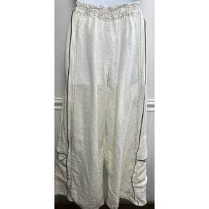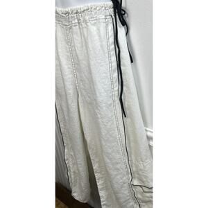Cynthia Ashby 100% Linen Pants XS Baggy Wide Leg Cream Black Topstitch Designer