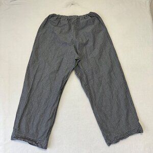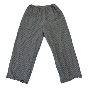 Cynthia Ashby 100% Linen Wide Leg Pull On Pants Size M Gray Stripes Lagenlook