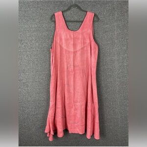 Cynthia Ashby Deep Salmon Sleeveless Flowy Lightweight Linen Midi Dress Large