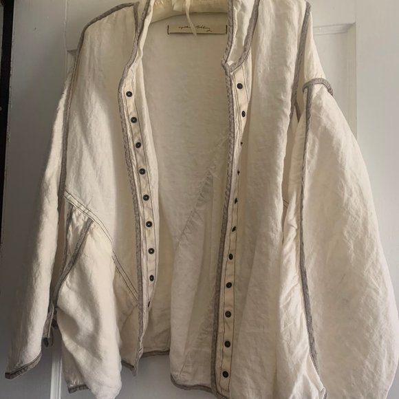 Cynthia Ashby Linen Natural Color Contrasting Trim Black Snap Front Jacket