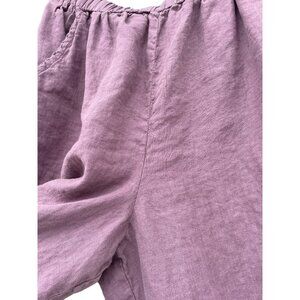 These Cynthia Ashby Large L linen pants in lavender are perfect for the woman who appreciates art-to-wear. Comfortable and oversized, they embody the lagenlook style.