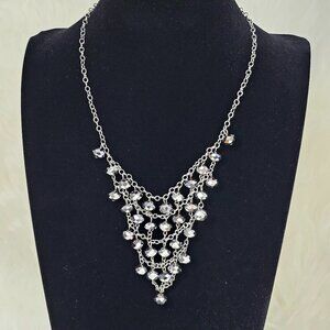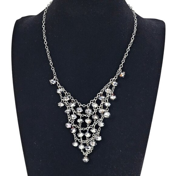Cynthia Gale Art Deco Multi Strand Silver Tone Beaded Statement Bib Necklace