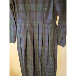 In excellent clean condition. The Cynthia Howie Dress in size 6 features a plaid pattern with a collared neckline and long sleeves, making it suitable for various occasions such as travel, casual outings, formal events, and business meetings. The maxi length dress has a button closure and adjustable waist, adding a touch of elegance with its pleated design. Made from a blend of polyester and rayon, this dress in a green color is perfect for those who appreciate a blend of academia and collegiate styles with a hint of Hogwarts-inspired flair.