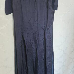 #vintage, #navybluedress, #elegant, #A-line, midi, #versatile, #classic, #shortsleeves, #pleats, #flatteringfit, #timelessstyle, #sundaysbest
