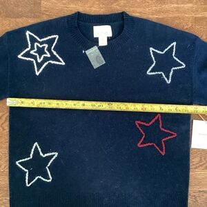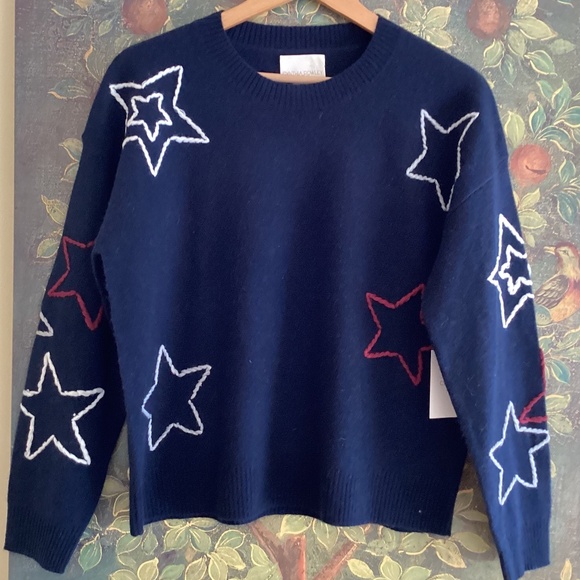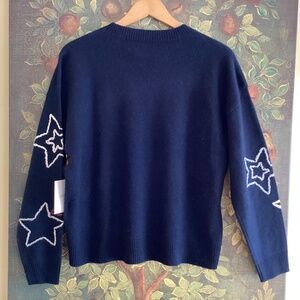 Cynthia Rowley 100% 2-Ply Cashmere Navy Red/White Stars Embroidered Sweater XL