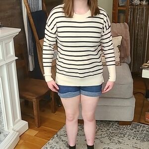 Cynthia Rowley 100% 2-ply cashmere black and white striped sweater size small.