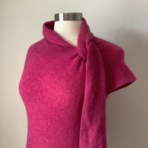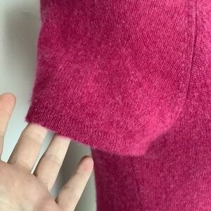 Cynthia Rowley 100% Cashmere Cap Sleeve Sweater. Perfect underneath a blazer! Dark Rose Pink Color. Size Medium. Good pre-owned condition, light signs of pilling which is expected with this kind of fabric. Flaw: two tiny holes on one side which can easily be fixed! See photos. Priced accordingly.