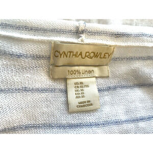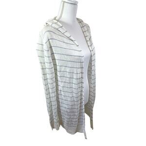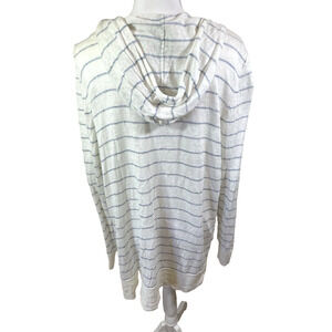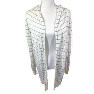 Cynthia Rowley 100% Linen Blue White Stripe Open Front Cardigan Hoodie