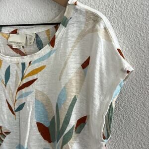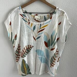 Cynthia Rowley 100% Linen Boxy Leaf Print Top Blouse Medium