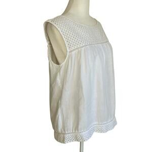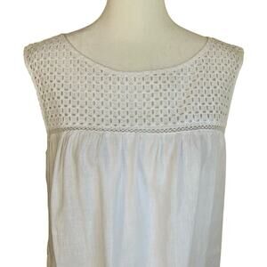 Cynthia Rowley 100% Linen Eyelet Detail Top Sleeveless Blouse Keyhole Back Sz L