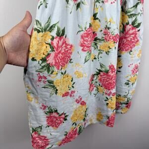 Cynthia Rowley 100% Linen Floral Dress Women 8 Blue Spaghetti Cami Resort Boho