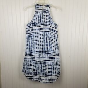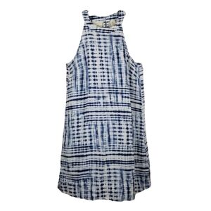 Cynthia Rowley 100% Linen Sleeveless Summer Dress Mini High Neck Print Tie Dye S