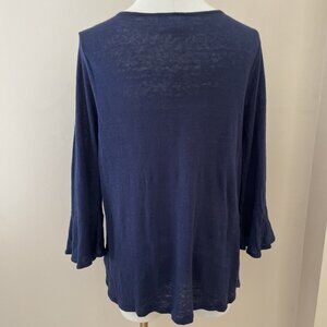Cynthia Rowley 100% Linen Top Blouse Size L Blue Bell Sleeve Boho Lagenlook