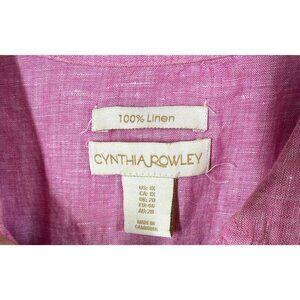 Cynthia Rowley 100% Linen Top Pink 1X Pullover Roll Tab Sleeve Coastal Lagenlook