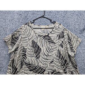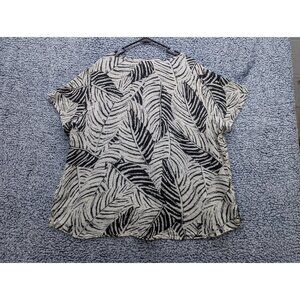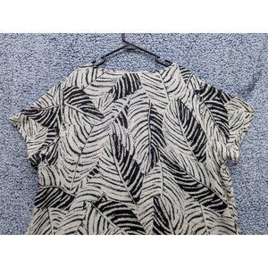 Cynthia Rowley 100% Linen Top Size 2X Lagenlook Botanical Floral Boho Plus Black