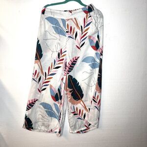 Cynthia Rowley Plus 100% Linen Tropical Print Wide Leg Crop Pants size medium