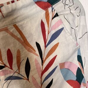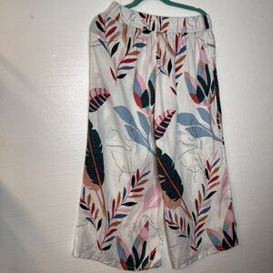 Cynthia Rowley 100% Linen Tropical Print Wide Leg Crop Pants size medium