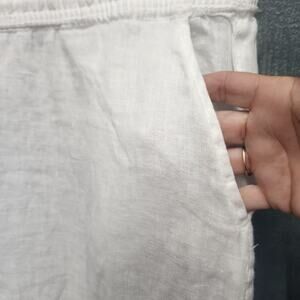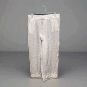 Cynthia Rowley 100% Linen Wide Leg Pant Cropped XL Bright White Semi Sheer Beach
