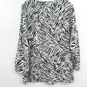 Cynthia Rowley 100% Linen Zebra Print Button Up Tunic Sz 1X Black White Beachy