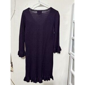 Cynthia Rowley 100% Merino Wool Sweater Dress Purple Size M Ruffle Hem & Sleeves
