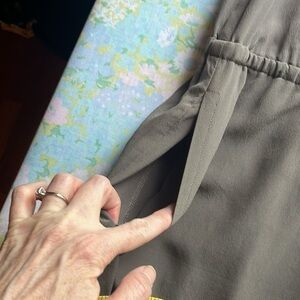 Beautiful dress. 100% silk. Taupe/gray color. Drawstring at waist. Split neck. In excellent condition. Size 6.