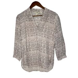 Cynthia Rowley Ivory 100% Silk Tunic Pullover V-neck 3/4 Sleeve Blouse M Women's