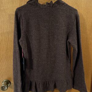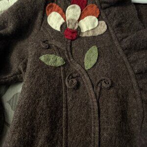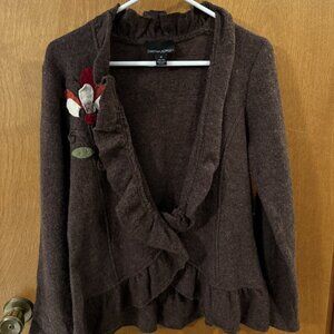 Cynthia Rowley 100% Wool Sweater Jacket Ruffle Felted Floral Accent Brown Medium