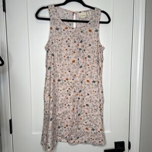 Beautiful floral 100% linen dress by Cynthia Rowley. Oversized flowy fit (would definitely fit a size small, maybe even a medium - see measurements). Stunning colors with soft pale pink as the base and a teal and orange floral pattern. Has pockets ladies!! Pearl button clasp in back at top of small keyhole.