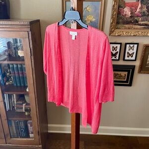 Cynthia Rowley 100% linen elbow length open front cardigan sweater SZ S pink