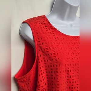 Cynthia Rowley 1X Bright Coral Sleeveless Top Button Back Cut Out Style