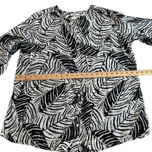 Cynthia Rowley 1X Linen Palm Print Roll Tab Sleeves Mother of Pearl Buttons Top Tunic Length