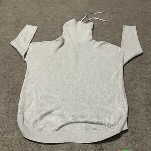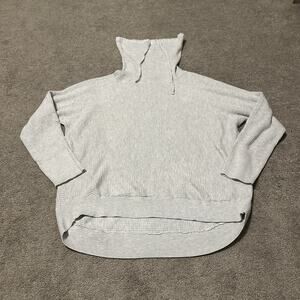 Cynthia Rowley 1X Sweater Cotton Blend Waffle Knit Funnel Neck Drawstring Gray