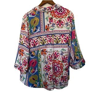 Cynthia Rowley 2X Multicolor Button Front Top Artsy Boho Vacation