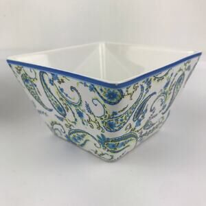 Cynthia Rowley 4 Square Bowls Paisley Blue Green White Cocktail Dessert Small