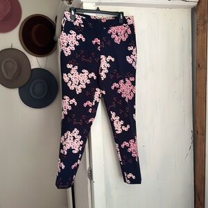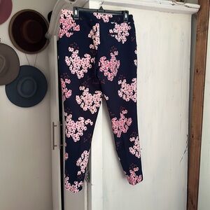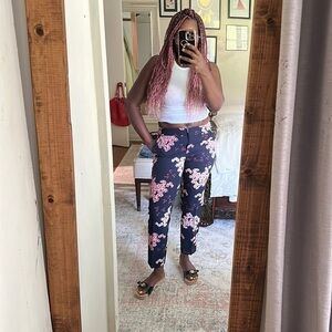 Cynthia Rowley flowered navy blue and pink printed straight leg ankle pants size 8 (I do have the matching blazer just listed separately)
