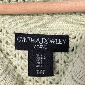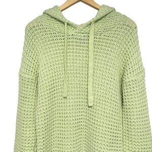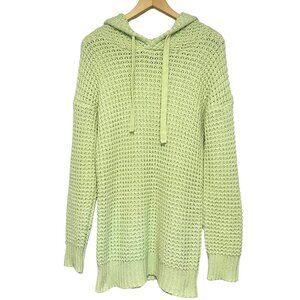 Cynthia Rowley Active Sweater Pullover Hoodie Womens L Green Crochet Open Knit