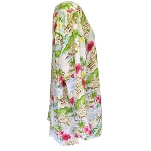 Cynthia Rowley Amalfi Coast Print Linen Shirt Top Tunic Top 1X