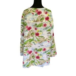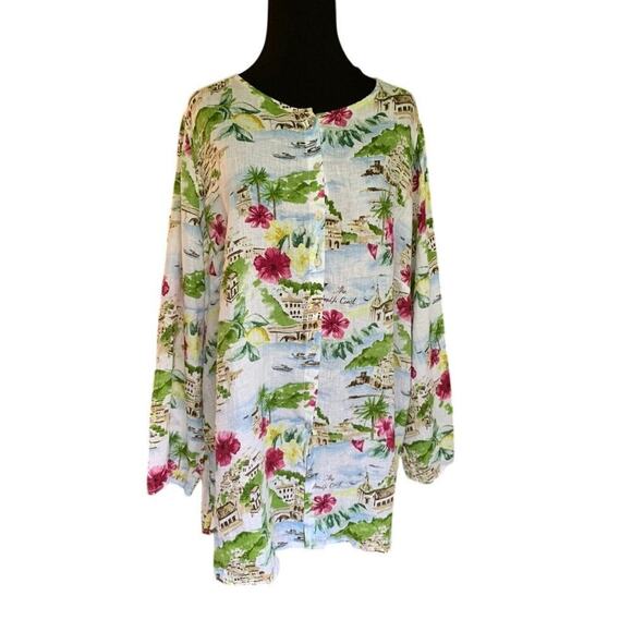 Cynthia Rowley Amalfi Coast Print Linen Shirt Top Tunic Top 1X