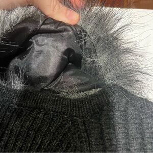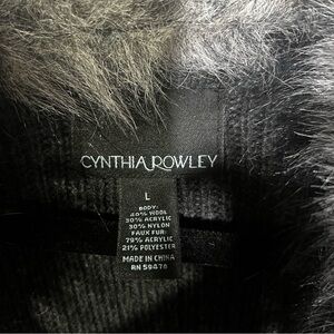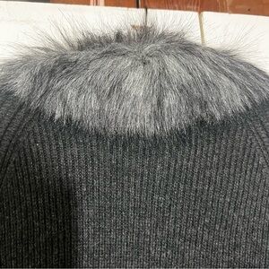 Cynthia Rowley Belted Cardigan Charcoal Gray Fur Collar Silver Size Large Wool