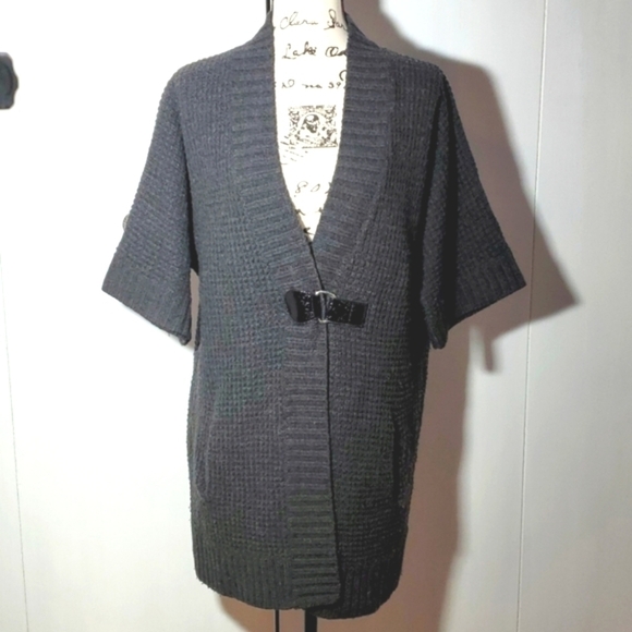 Cynthia Rowley- Black 100% Merino Wool Open Knit Cardigan Classic Sz.1X