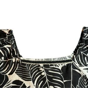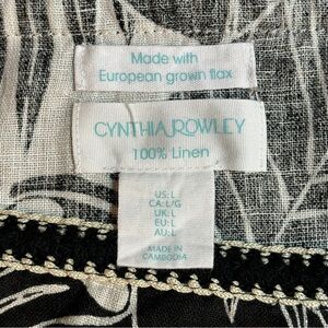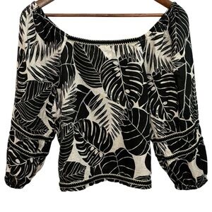 Cynthia Rowley Black & Cream Tropical Print Linen Blend Blouse Sz L