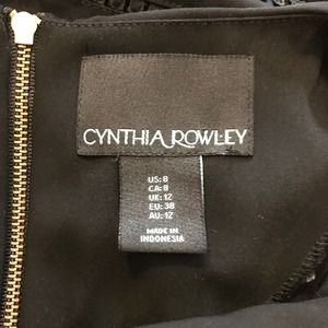 Cynthia Rowley black dress with lace and fringe detail at hem. Back gold zipper. The little black dress everyone should own.