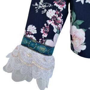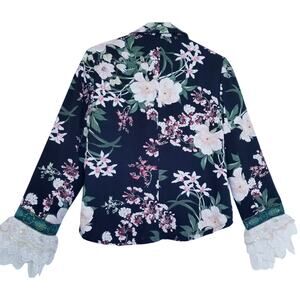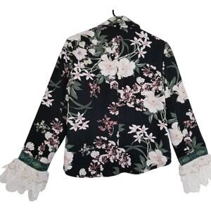 Cynthia Rowley Black Floral Botanical Blazer Jacket Lace @ Sleeve Ends Size S