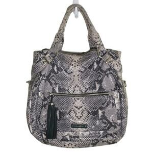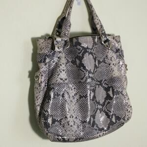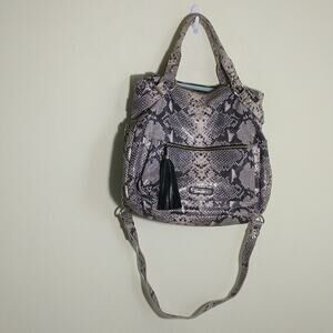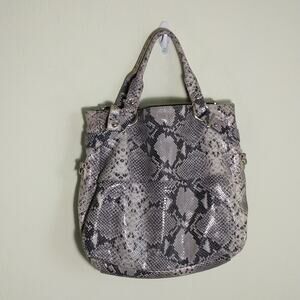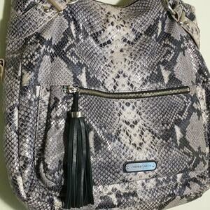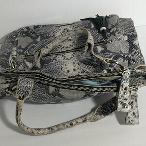 Cynthia Rowley Black Gray Snakeskin print all Leather bag With Shoulder Strap