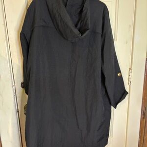 Cynthia Rowley Black Hooded Jacket Trench Coat Size 2X Gold Buttons