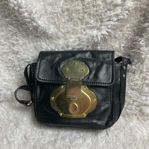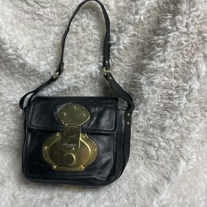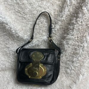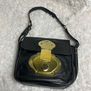 Cynthia Rowley Black Leather small satchel bold gold tone accents & Hardwares