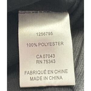 The Cynthia Rowley Black Lined Blouse with Gold Keyhole Neck and Ruffled Cuff in size 2X is a stylish and versatile top perfect for various occasions such as travel, parties, workwear, and business meetings. Made from polyester chiffon fabric, this blouse features a speckled pattern, long sleeves with ruffled cuffs, and a round neckline with a keyhole detail that adds a touch of sophistication. The pullover style and regular fit make it easy to wear and suitable for all-day comfort. Perfect for the winter, fall, and spring seasons, this classic black blouse is a wardrobe staple for any woman. Chest 27”. Length 26 1/2”.